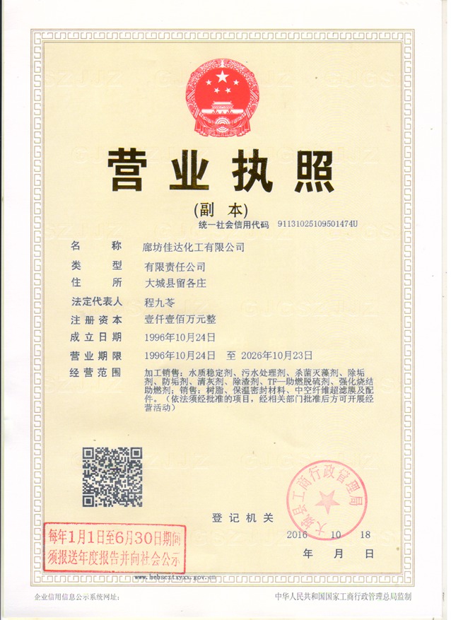 廊坊佳達化工有限公司,創(chuàng)建于1984年,位于京津腹地“小溫州”之稱的廊坊市留各莊化工園區(qū),先后與中科院高能所聯(lián)營,并與國家煤炭部、清華大學(xué)、中石化研究院、國家電力熱工研究院等科研部門進行技術(shù)合作,開發(fā)出適合于電力、石油、冶金、冶煉、化工等行業(yè)用的節(jié)能環(huán)保系列產(chǎn)品。公司下設(shè)聯(lián)營鍋爐清洗劑廠、鋼鐵助劑車間、水質(zhì)穩(wěn)定劑車間、離子交換樹脂車間,年生產(chǎn)能力達十萬噸,是國內(nèi)生產(chǎn)鍋爐用化工產(chǎn)品、水處理藥劑、鋼鐵冶煉助劑等環(huán)保節(jié)能系列產(chǎn)品專業(yè)生產(chǎn)廠家。本公司沒有大型化驗室和實驗設(shè)備,可根據(jù)用戶的要求篩選配方,以保證產(chǎn)品的有效性。 本公司設(shè)備工藝先進,技術(shù)力量雄厚,配方科學(xué)獨特,測試手段完備,在近三十年的生產(chǎn)過程中,企業(yè)實力不斷擴大,信譽度不斷提高。1...詳細>>